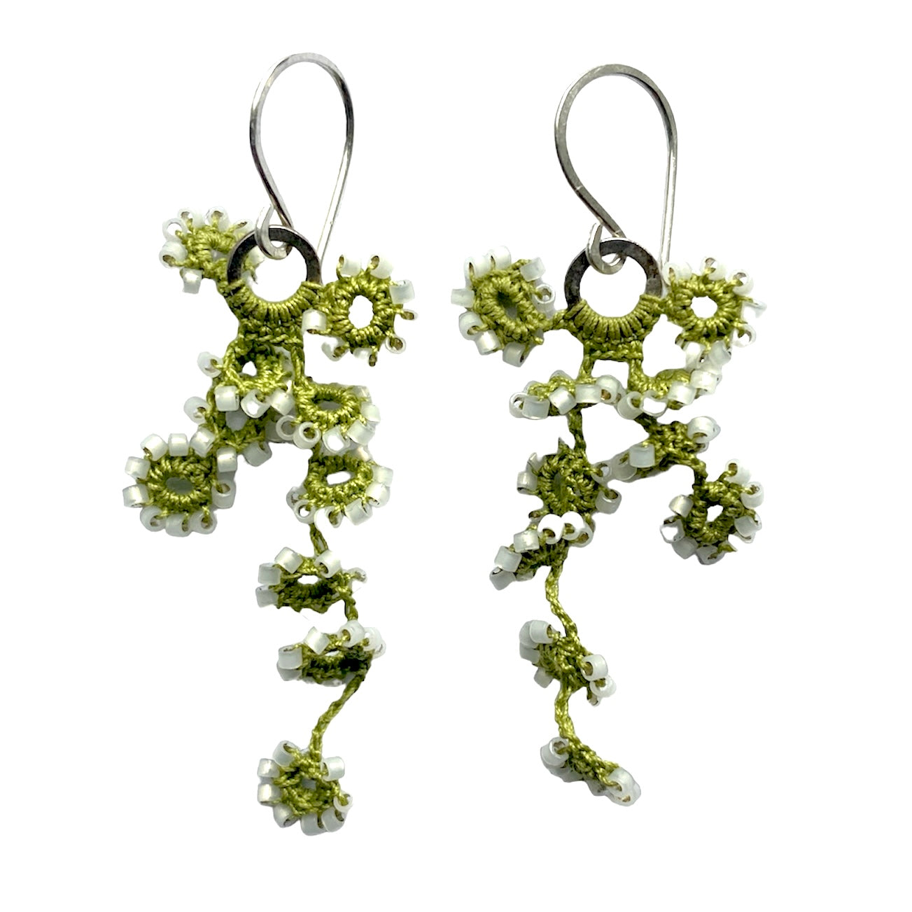 Delicate and light crochet earrings, they look like waterfall, crocheted with mercerised cotton and glass seed beads. Can be ordered in other colours, please message for availability.